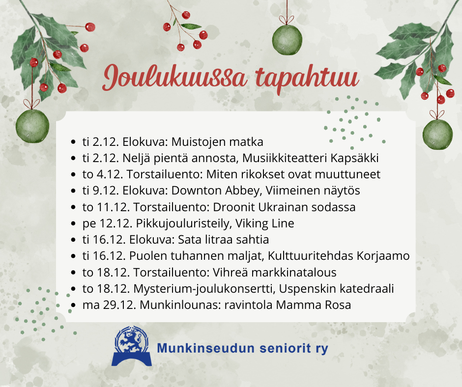 Tervetuloa Munkinseudun seniorit ry:n sivuille!