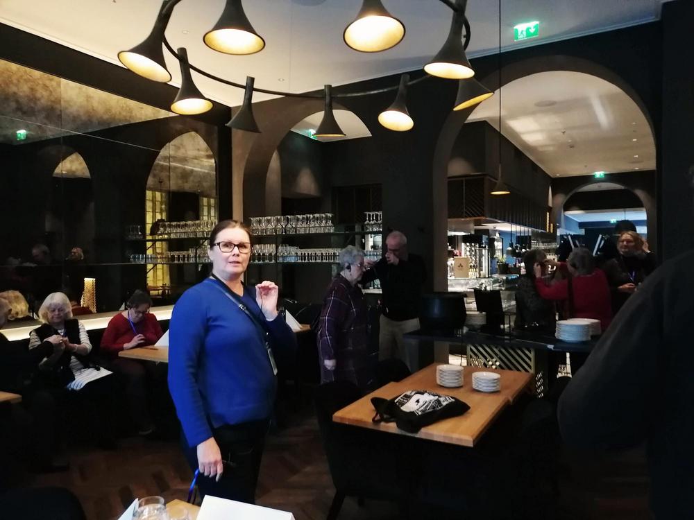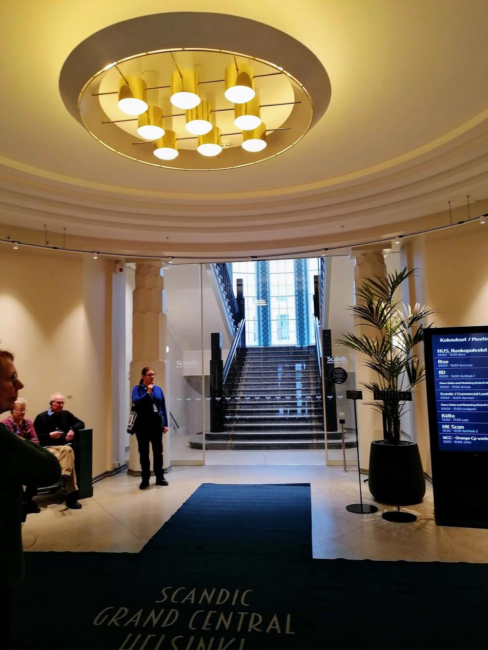 Ryhmämme pääsi tutustumaan jugendhelmen, arvokasta kulttuurihistoriaa henkivään Eliel Saarisen suunnittelemaan vuonna 1909 valmistuneeseen Valtionrautateiden entiseen hallintorakennukseen, joka on kuoriutunut uuteen elämäänsä Scandic Grand Central - hotellina.