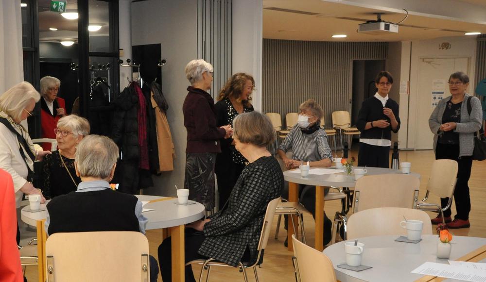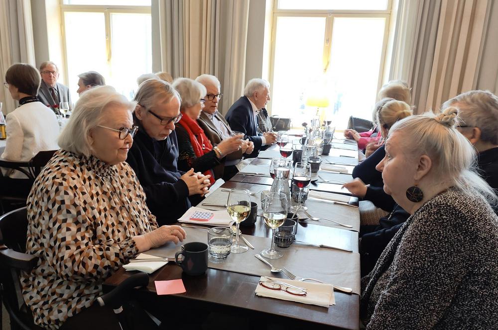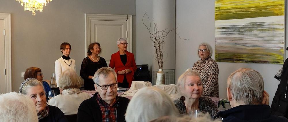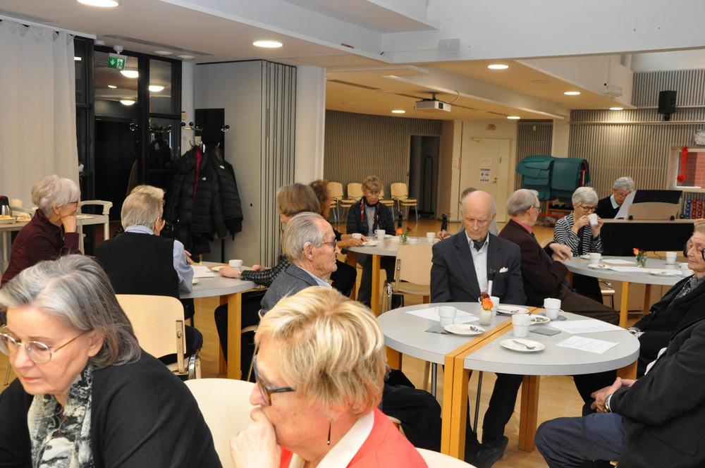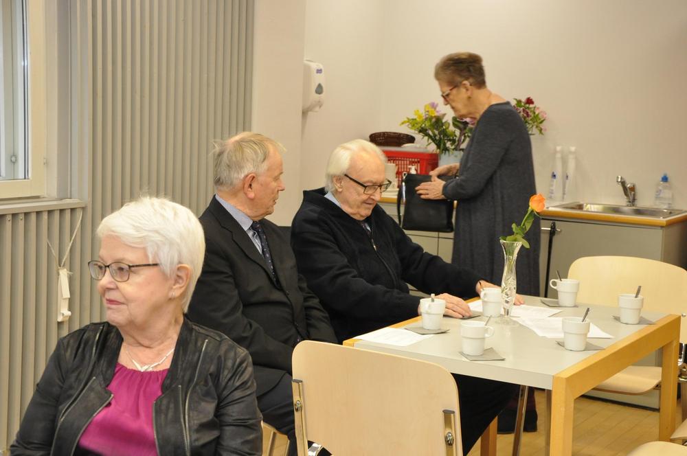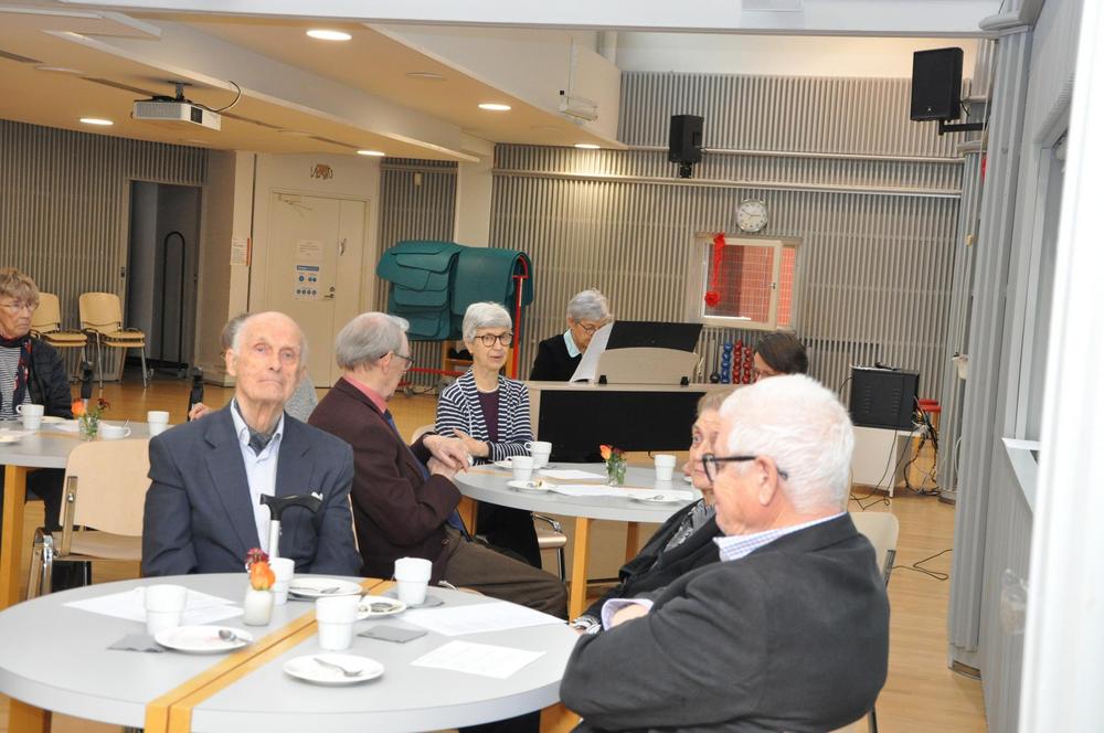 Kerran vuodessa juhlistamme yhdessä tasavuosia täyttäneiden jäsentemme syntymäpäiviä. Läsnä oli 27 sankaria ja yhdistyksen hallitus. Juhlaväkeä viihdytti pianisti Leena Posti. Kakku maistui ja iloinen puheensorina täytti salin.